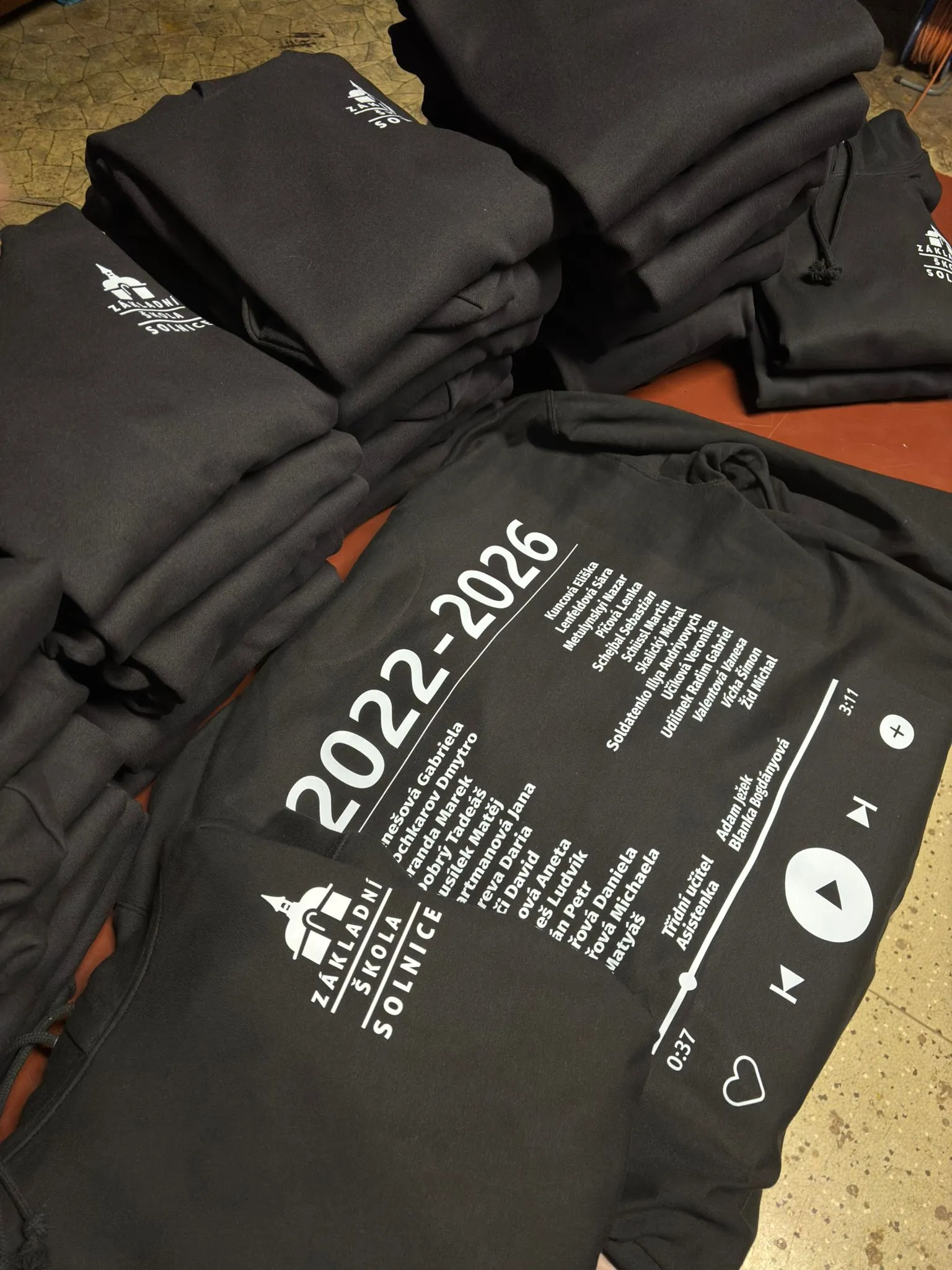 Od třídních triček a maturitních kolekcí až po prémiové univerzitní mikiny. Postaráme se o grafiku, kvalitu i včasné dodání, abyste vy mohli jen slavit.
