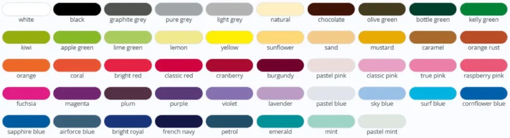 Zobrazit barvy a tabulku velikostí