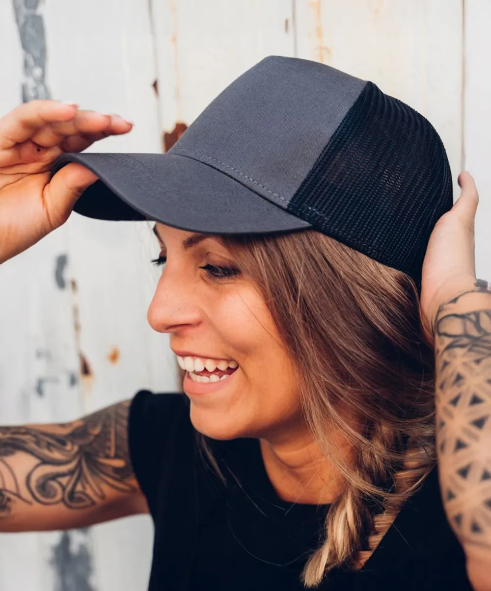 Truckerka, která vypadá dobře a zároveň je pohodlná i v létě. „Rapper Cotton“ má pevně tvarovanou přední část, ohnutý kšilt a vzadu klasickou patentku, takže sedne skoro každému. Boční a zadní díly z mesh polyesteru větrají, takže je top na školní akce, sport i týmový merch.